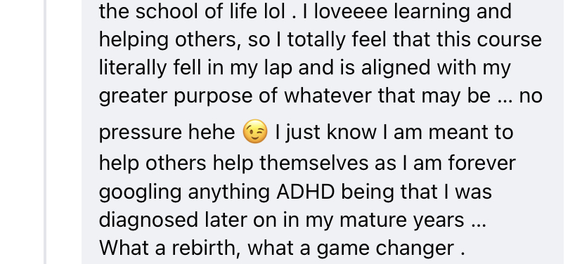 An incredible course that helped me understand my own ADHD.